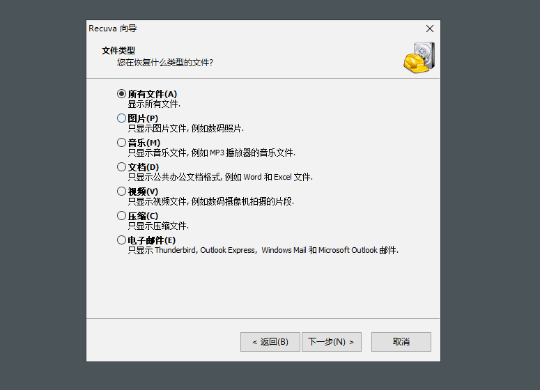打开 Recuva ,系统会贴心的给出使用向导,以世超要找的图片为例,选择找回类型以及删除路径,接下来就交给软件,听天由命了。
