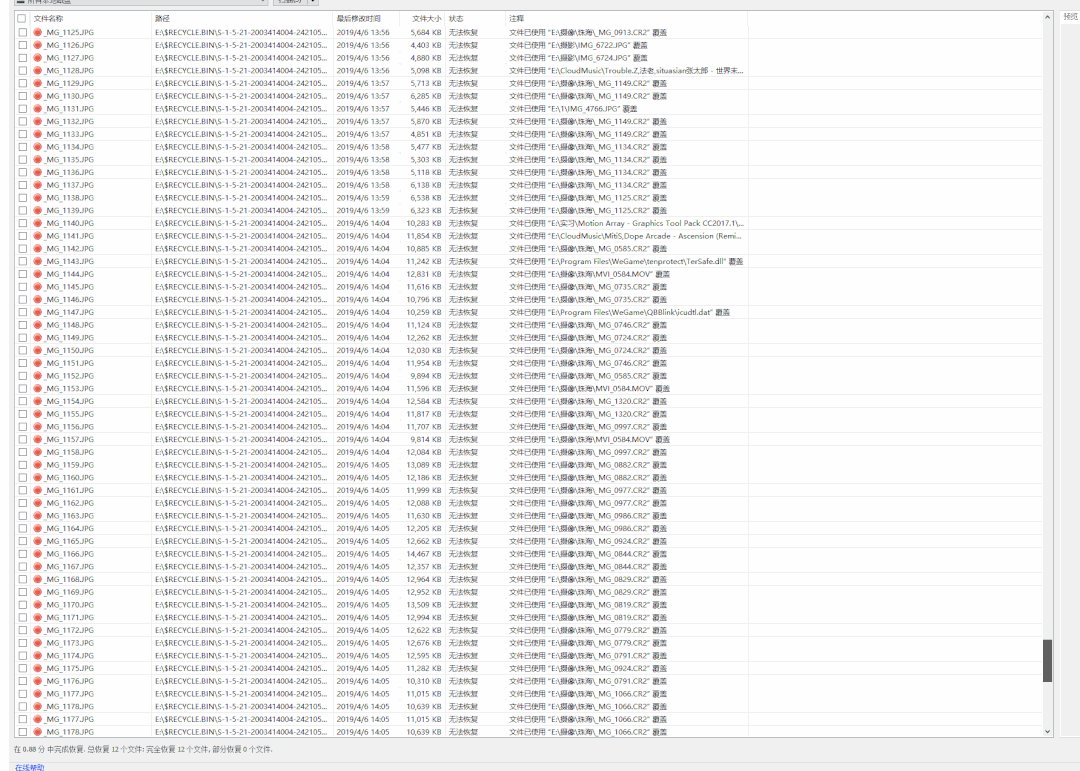 极好当然是可以恢复的文件,不佳就得打个问号了,很差就基本找不回来了,无法恢复的话只能节哀顺变了。。。
