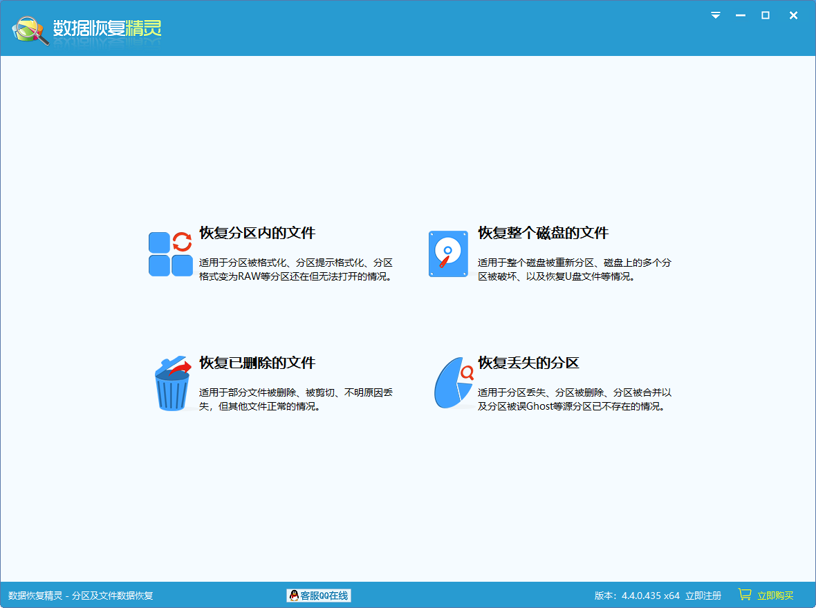 “数据恢复精灵”这款软件能够让用户们快速的找到并恢复丢失、误删的文件或者磁盘分区。这款软件的界面设计的非常的简单,对于刚上手的用户们来说是非常易于操作的。软件支持从损坏的分区中恢复文件。它涵盖了被格式化的磁盘文件分区,或者是被病毒损坏、系统崩溃等等其他原因造成,而无法访问的分区,提示被格式化的分区,提示目录结构被破坏的分区,变成RAW格式的分区等等。