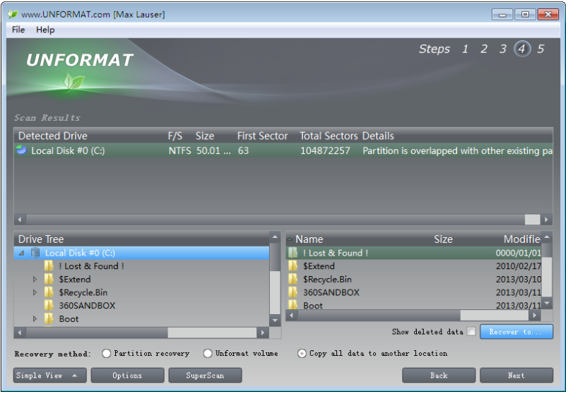 Unformat是一款高效实用的应用程序,用户可以通过它合理有效的防止数据丢失,安全方便。作为电脑一族,我们还可以通过它恢复一时失误删除的各项数据。 Unformat可以恢复电脑硬盘中删除的文件,也可以恢复闪存或者FAT32,NTFS,FAT等格式的USB记忆棒中的文件。恢复格式化后的磁盘/U盘/记忆卡中误删文件