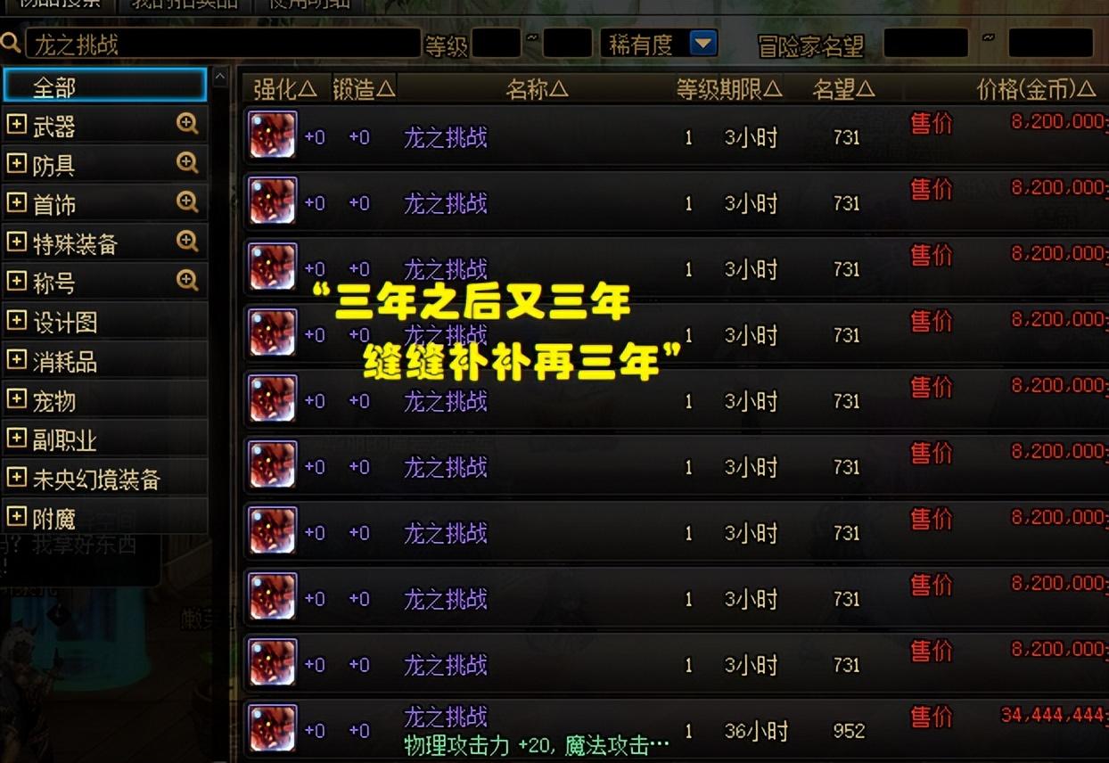 再加上这个称号非常贵,很多玩家用了很久都舍不得换,于是就有了调侃,“龙之挑战再战三年”,但是没想到的是,三年之后又三年,直到如今依旧没淘汰,按照这个趋势看,“龙之挑战再战十年”都可以了!
