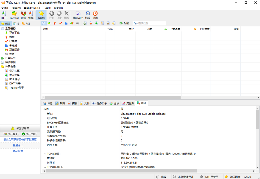 比特彗星是一款免费的BT/HTTP/FTP下载软件。比特彗星支持同时下载多个文件,支持断点续传,还具有流量控制、IP过滤、种子制作和磁力链接等功能。