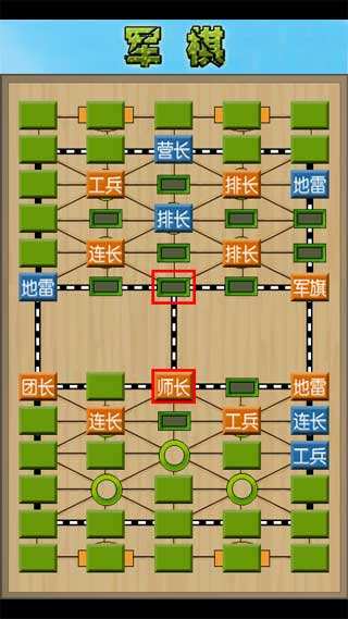 棋子大小分配为:司令、军长、师长、旅长、团长、营长、连长、排长、工兵。上级吃下级。