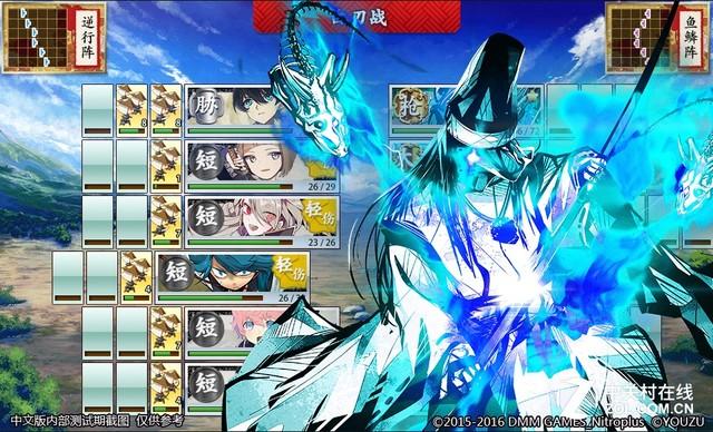 战斗过程全AI自动进行,男性向爆衣环节也会在战斗中体现,同时还有刀剑男子声优根据战斗状态进行的配音。