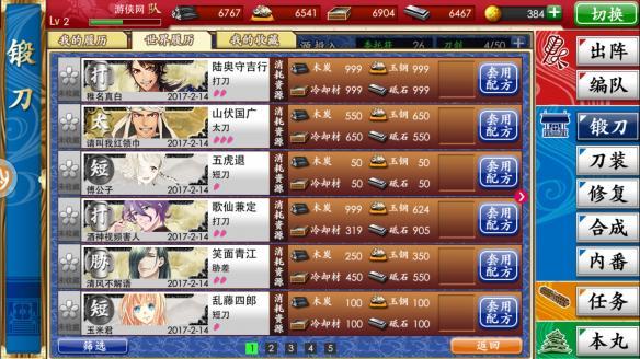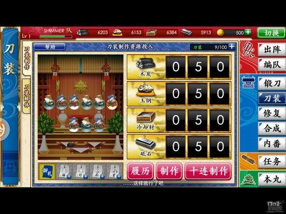 通过锻刀多多打造新的刀剑男士,然后编成一个完整的队伍吧!