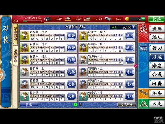 要收集的人物分布在不同的关卡(通常是地图尾关),第一次登陆在完成新手引导后便会被引导进入关卡,关卡战斗无论输或者赢都会获得资源,积累的资源(木材、炭石等)也可以兑换,但出于几率的问题,大部分时候是不能够获得如意郎君,但会收获另外的人物。这成为推进内容的表现之一。其次,后期关卡难度大,无论是出于收集角色还是储备资源,提升战力是必做的事情,这样合成、刀装、内番这类能加强数值的系统则运用而致。