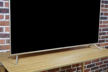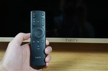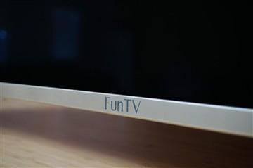 风行电视的外观比较简洁,而且使用了金色作为它的主色调,与金属材质相比,没有冰冷的感觉,看起来更加温暖,放到家里也非常有格调。电视正面并没有过多的信息,只有底部边框的“FunTV”logo。