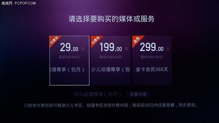 风行电视牌照方为百事通,拥有东方明珠的海量内容库,内容资源不容小觑,目前它内置了影视、动漫儿童、最纪实、英超等4个会员服务包,下面就分别来看看它的具体表现。