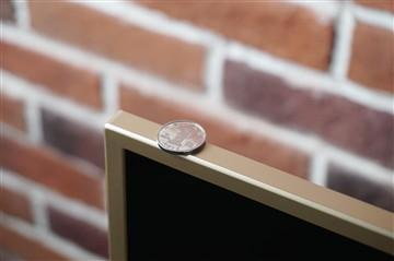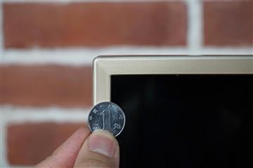 边框使用的是工程塑料材质,从正面看边框非常窄,基本相当于1毛硬币直径的一半,另外边角衔接处采用一体设计,没有拼接的痕迹。从侧面看,边框的厚度也保持得不错,而且45°切角的边框在光线映照下美感十足,在细节的处理上非常到位。