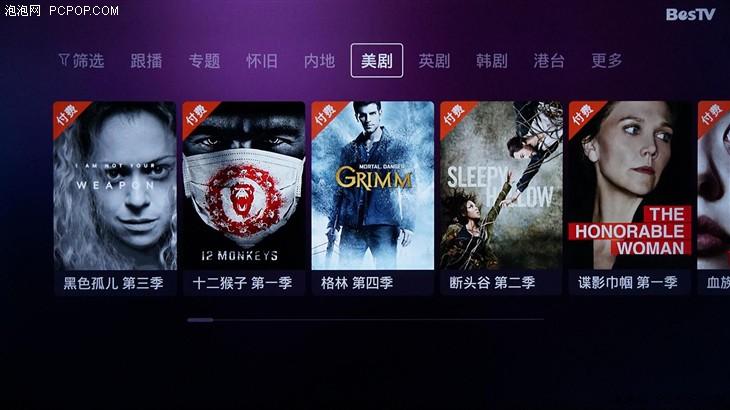 右上角我们可以看到,风行电视搭载百视通正版影视资源牌照,同时这款电视还搭载有爱奇艺、优酷、腾讯等优质视频内容,总之你想看的、你爱看的,在风行电视上面一定都能找到!