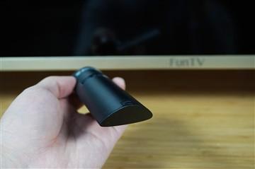 遥控器为蓝牙传输,操作时更为灵活自由,它共有15个按键,算得上比较简洁,另外它的造型也比较独特,握在手里非常舒服。从遥控器按键还可以看出它支持语音搜索功能,可以更加提高操控的效率,同时遥控器上还拥有一键切换信源及系统优化功能,可以让操控更加便捷和流畅。