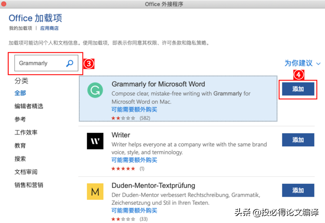 今天小编给大家分享的是Grammarly 的Word插件,Windows和Mac系统下都能用~