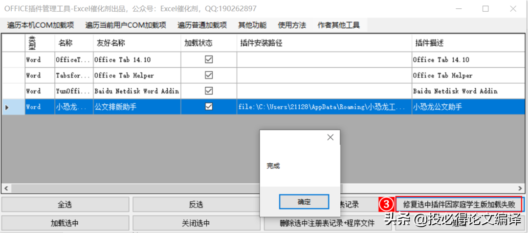 若插件未能成功显示,最常见的原因是咱们安装了家庭和学生版的Office。这时候可以下载由Excel催化剂作者开发的office插件管理工具(下载地址: