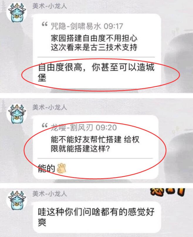 除了环境,玩家最关心的自由度上面瓜皮君发现官方也做出了解释,在《古剑奇谭OL》曝光的家园系统中,完全可以自由摆放相关的素材,甚至有官方人员透露,在这里不仅可以造亭台楼阁,就算是造城堡都没有问题。除了建造自由之外,此次《古剑奇谭OL》家园系统中最引入瞩目的,可能还是那个社区家园的设定。