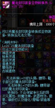 22.新职业的堆buff的圣物上衣会被奸商炒得奇贵,但圣物上衣可以从对应等级的假紫升级而成(成品无法交易也不能封,可以转移),需要对应等级转换书+对应圣物碎片,月光酒馆的新NPC有卖图纸和碎片。