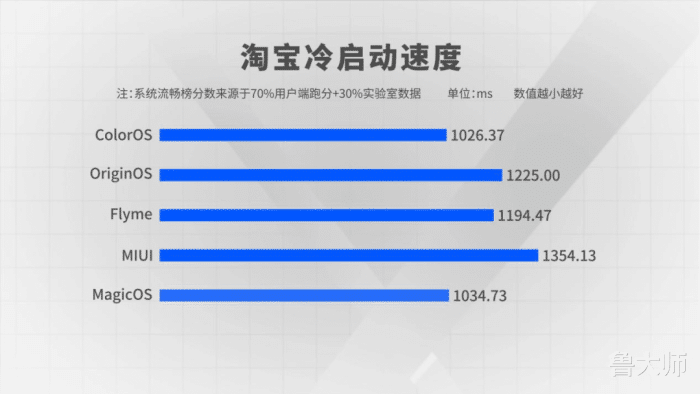 ColorOS发挥稳定,以微弱差距排名第二;第三名的OriginOS与第四名Flyme相差不大,都在800ms左右;MIUI稍显“迟钝”,是唯一一款进入900ms的系统。