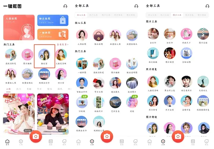 还有像换妆容功能抠图、图片格式转换功能,也贼拉好用,大家可以去试试,我就不一一展示了