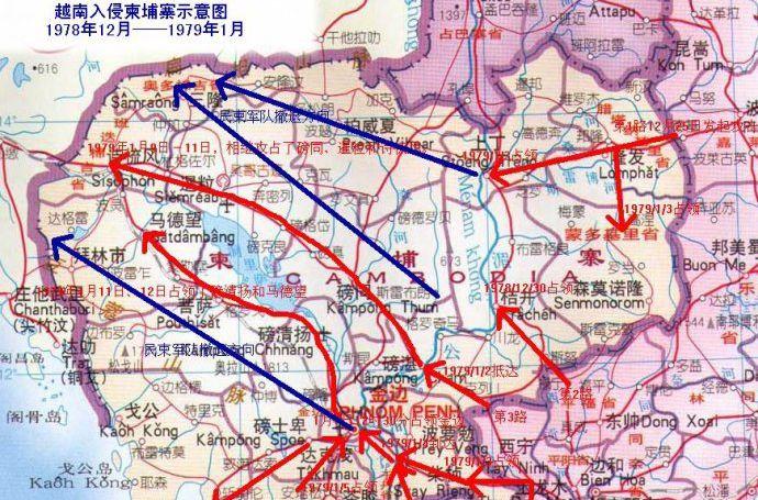 (越南入侵柬埔寨示意图)