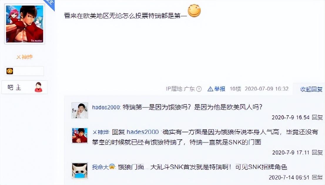 而在许多民间投票里,如果是欧美玩家投票,特瑞总能名列前茅,有时人气甚至超过了草薙京、八神庵等 “主角”。