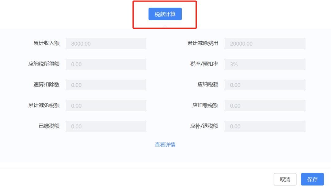 步骤三:点击【税款计算】按钮进行税款计算。税款计算成功后,下方字段展示计算后的数据。
