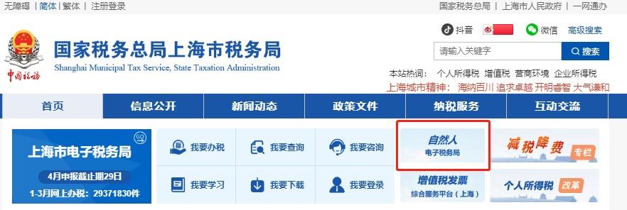 (2)也可通过国家税务总局上海市税务局官方网站首页“自然人电子税务局”模块进入。