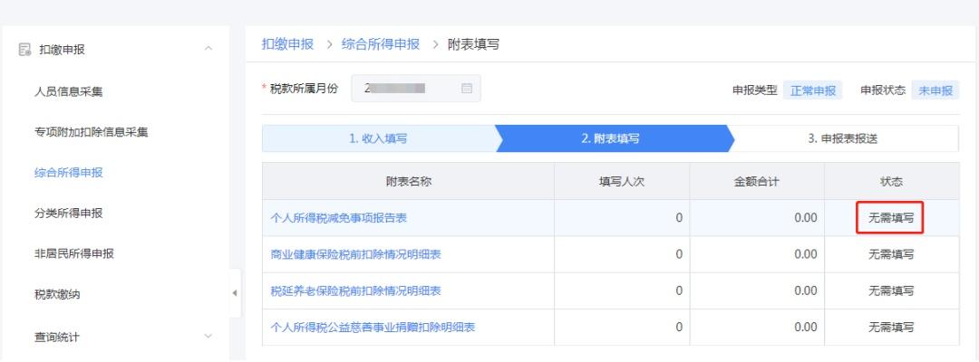 步骤五:各人员的收入及减除信息填写完后,填写附表内容。