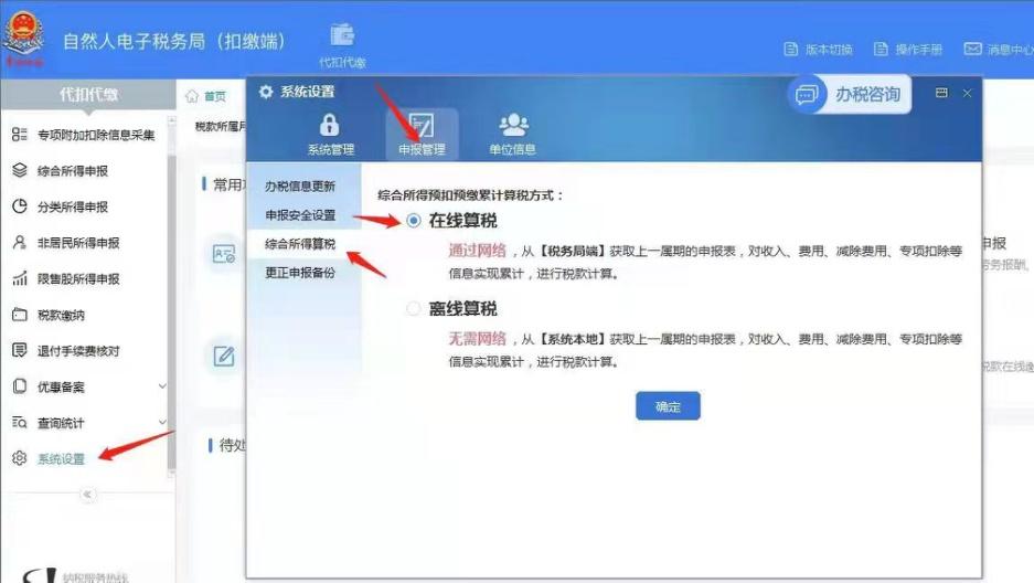 (1) 在申报前通过【系统设置】设置综合所得预扣预缴累计算税方式;