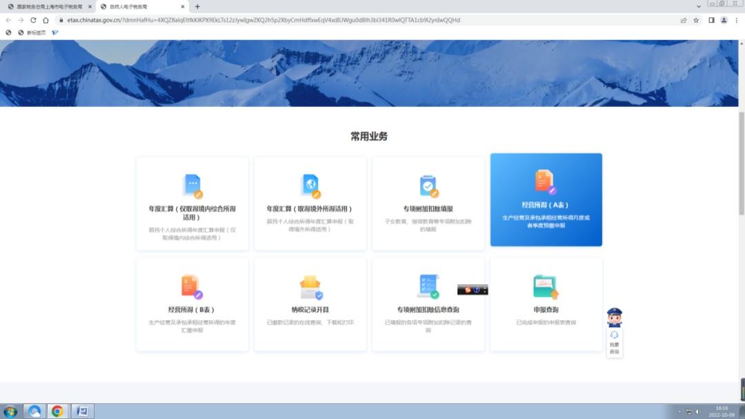 1.登录成功后下滑页面,选择常用业务——点击【经营所得(A表)】。
