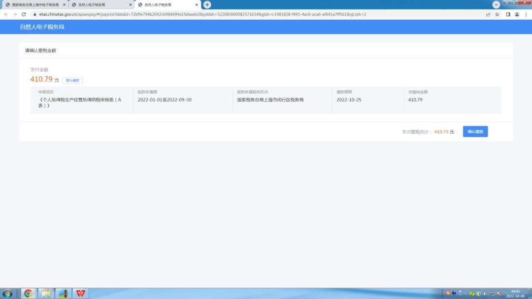 2. 确认缴税金额,点击【确认缴税】