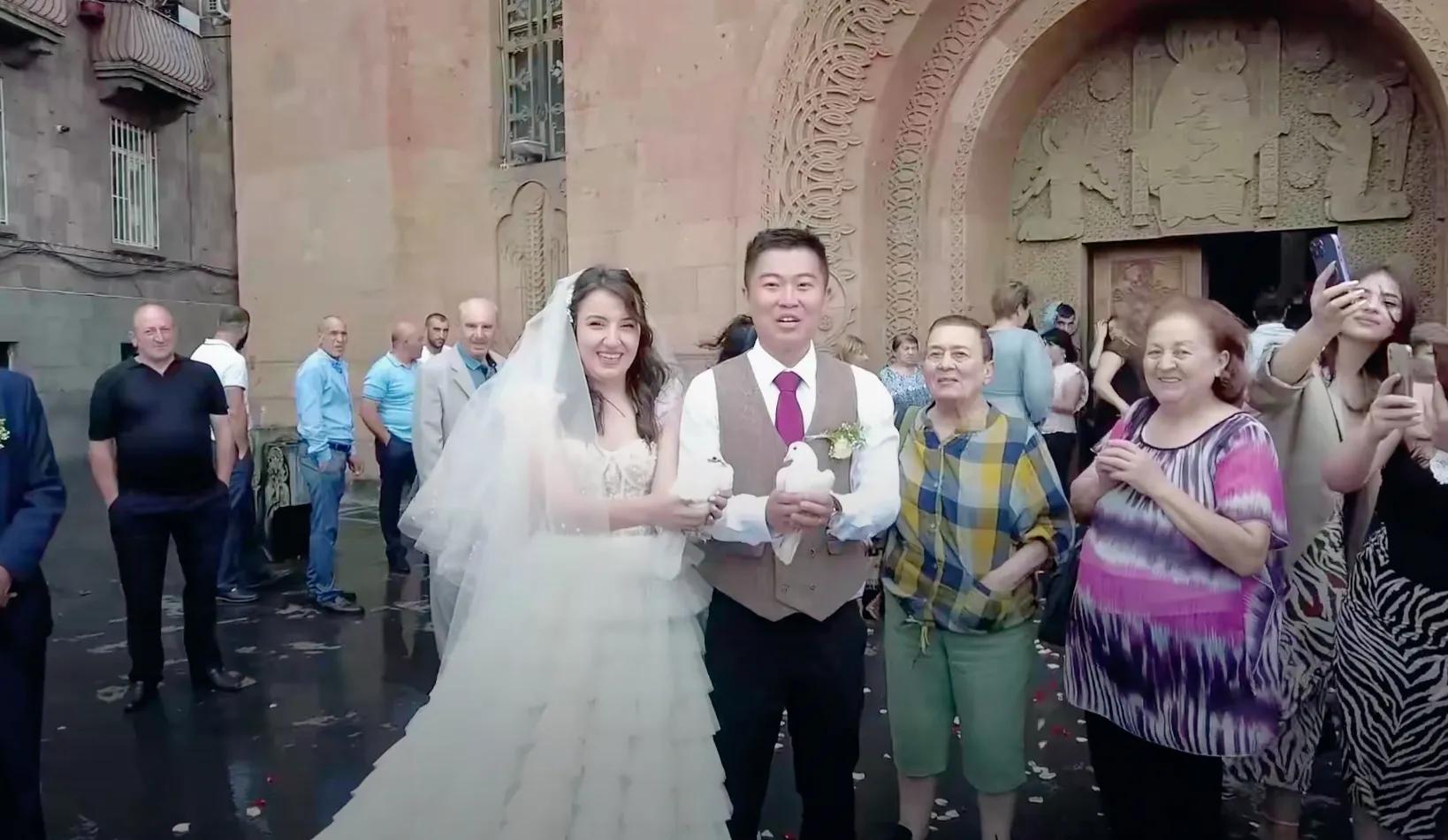 爱情其实都是缘分带来的,汪汪和玛利亚的爱情告诉大家,你可以不相信命运,但要相信缘分。想当年汪汪第一个想找的是亚美尼亚红娘当老婆,被红娘婉拒。不知道汪汪要是和红娘在一起,会不会有今天成功的事业和甜蜜的爱情。汪汪幸得玛丽亚,夫唱夫随,夫妻同心。玛利亚和汪汪彼此成就,这才是爱情最美的样子。汪汪通过努力,给最爱的人很美很浪漫的婚礼,这样的婚礼是很多女神的梦想,甜蜜美好的婚礼让这对新人永生难忘。三辆国产东风汽车,载着这对幸福的年轻人驶向酒店。虽然是大喜的日子,汪汪仍然在车上宣传着东风汽车,车到了酒店门口,汪汪还采访了亚美尼亚的车主,很敬佩汪汪的爱国情怀,大婚的日子里,心里还装着民族品牌。两只雪白的鸽子,分别被攥在新人的手里,然后他们仰望天空松开手,任由鸽子飞去……汪汪让大家解了亚美尼亚的婚礼仪式和浪漫的场景。