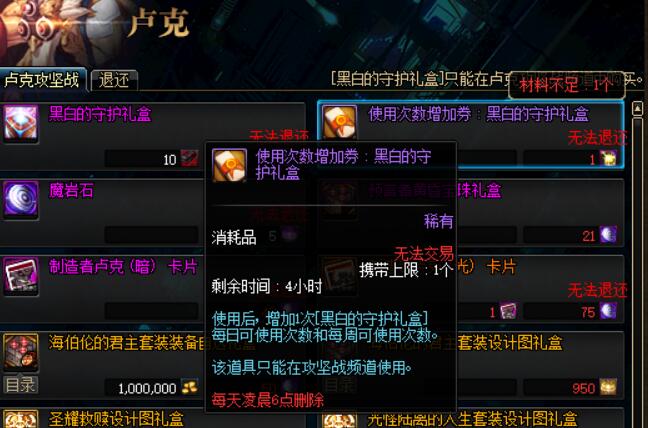 3.卢克和超时空旋涡团本商店中增加使用次数增加券