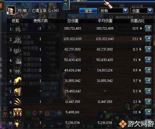 接下来就是死灵的输出环节了,这是进图的属性和伤害图,常规175加活力药水加斗神加暗符咒