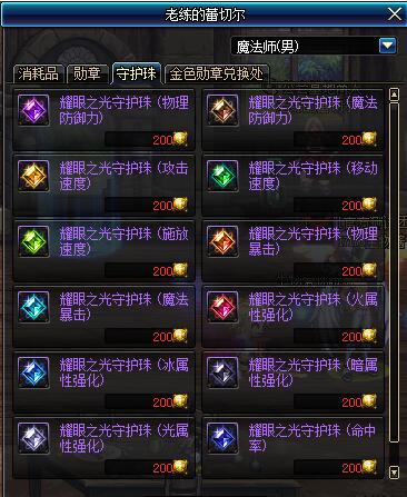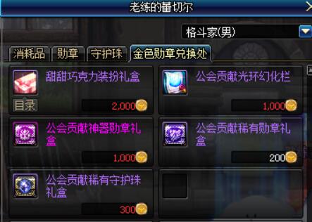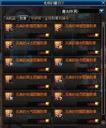 金色勋章就是现在国服的贡献币兑换内容,但删除了疲劳药和抗虚弱药。