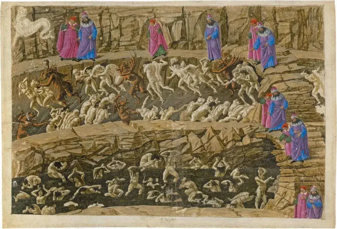 文艺复兴巨匠波提切利 痴迷于但丁的《神曲》,为之绘制了近一百幅插画;