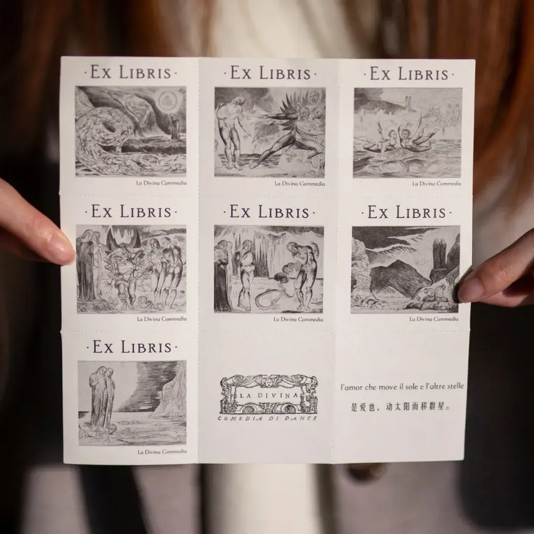 还有威廉·布莱克专为《神曲》绘制的全套藏书票,足足7张 ,可以自己撕开使用哦▼
