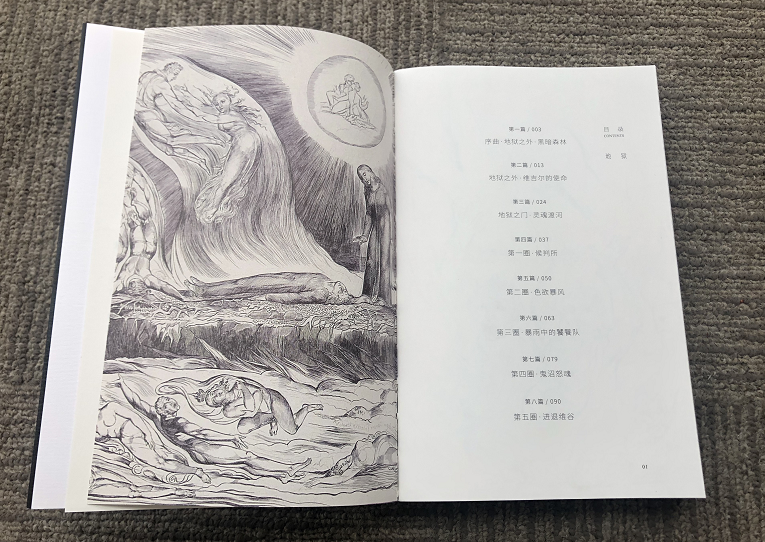 书中配合文字,加入英国画家威廉·布莱克102幅震撼画作,还原《神曲》经典场景。