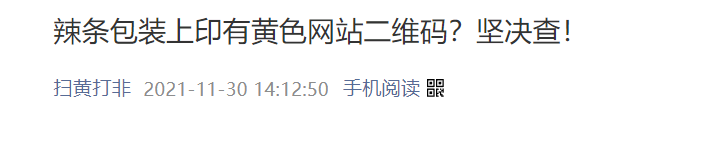 在某些学校附近出售的辣条包上,竟然印有黄色网站二维码?