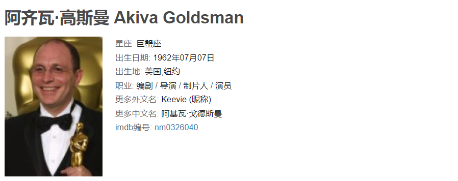另外编剧阿齐瓦·高斯曼 也有望回归执笔剧本,威尔·史密斯的另一部科幻经典《我,机器人》 也是他的手笔,更早的时间点,他还写过《美丽心灵》、《铁拳男人》 这两部佳作。