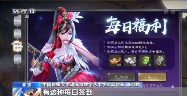 中国传媒大学动画与数字艺术学院副院长 陈京炜:从心理学的角度上来说,游戏会用各种各样的方法把玩家留住,比如说我们有一些手游你会看到,有这种每日签到,签到了就有礼包,签到七天有大礼包。