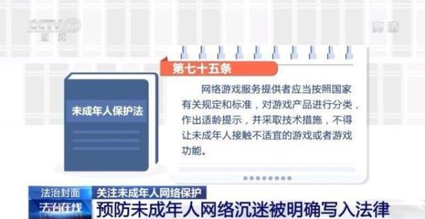 2020年10月17日,新修订的《未成年人保护法》明确将预防未成年人网络沉迷写入法律,其中第七十五条,规定: