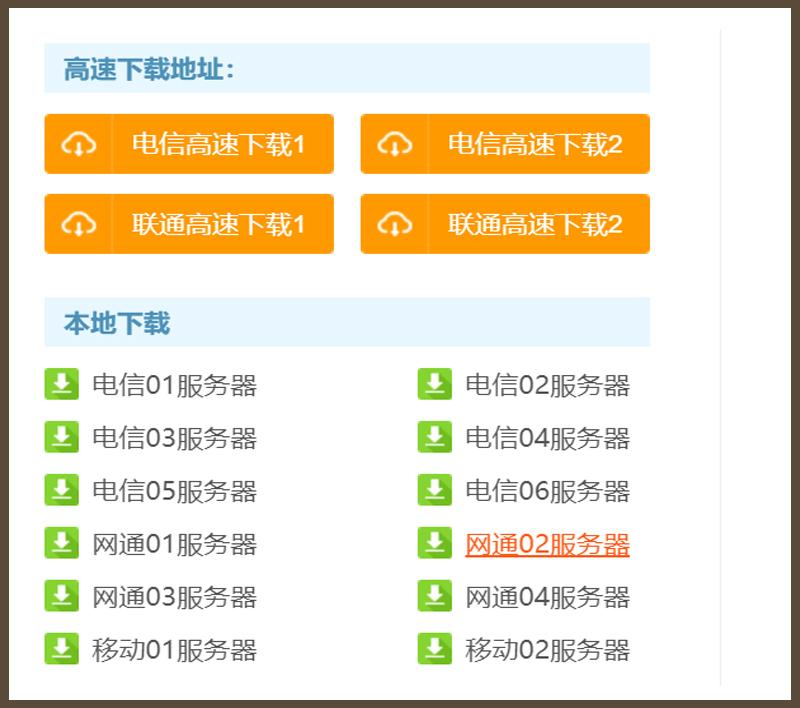 有经验的人都知道,下面那些显示“电信01服务器”,“网通02服务器”之类的才是真的,其他的下载链接都是假的。