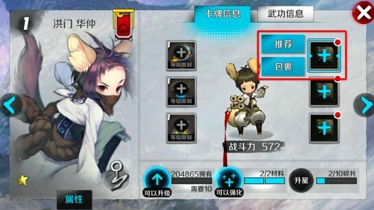 获得适合该职业穿戴的宝石后,卡牌详细信息右侧的宝石装备栏会亮起蓝色的加号图标,点击后会出现“推荐”和“包裹”选项。