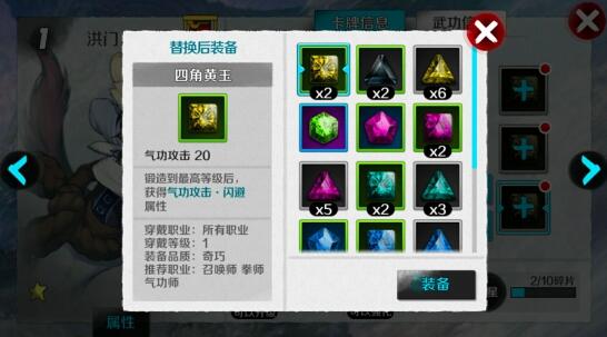 10. 黄绿石:增加最大生命、气功攻击、气功防御、闪避