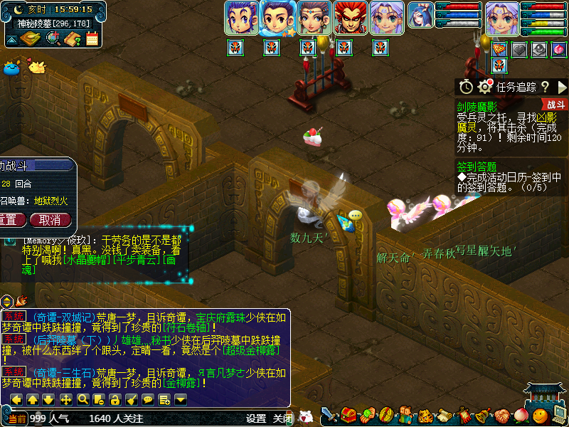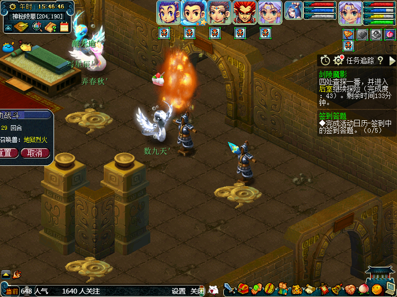 然后我们带着玄兵石来到刚才说到的2-3位置,点击火进入战斗。前排是3个ST,后排一般是法系,不用被他的阵势糊弄到,其实战斗难度非常的低。