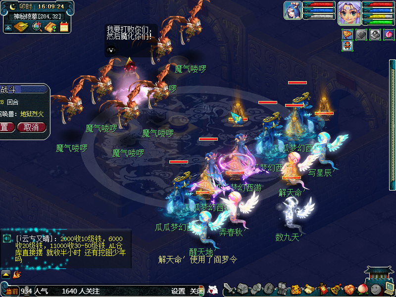 所以我们BOSS的击杀顺序是:主怪>幽莹娃娃=炎魔神>小怪