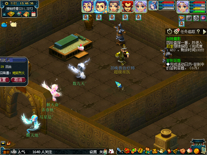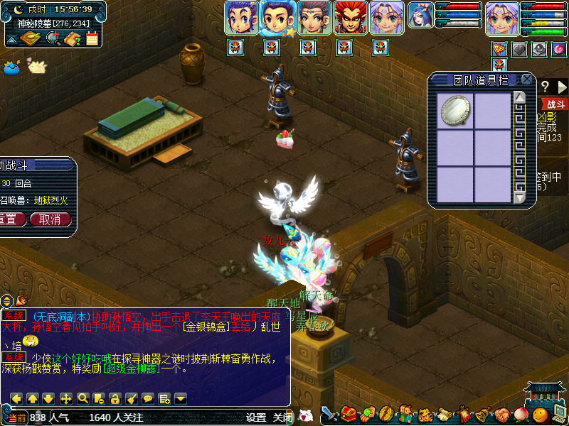 贴墙后会进入一个房间,这里遍地都是瓶子,每一个瓶子都可以触发战斗,这里一共战斗5场,每次2点,瓜瓜每次都是7点完成度进入,17点完成度出去,你也可以自己计数。这里会获得如意丹、锦盒、宝图等