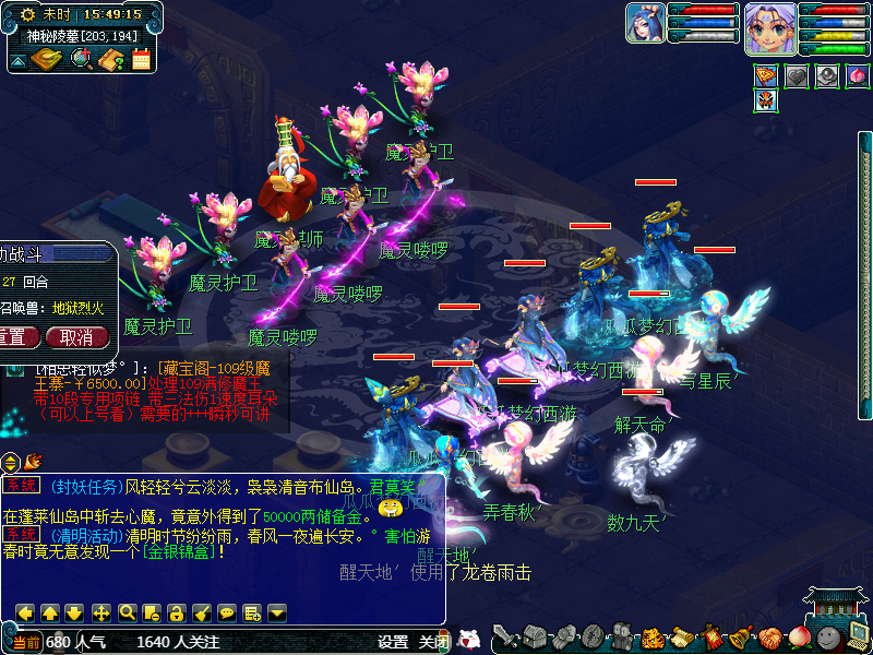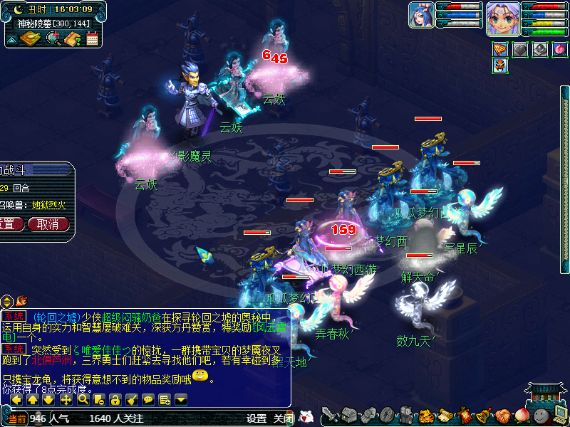 点黑山老妖切入战斗,可以封前排的狐狸。难度很小,都是挂机过。杀完以后进入动画