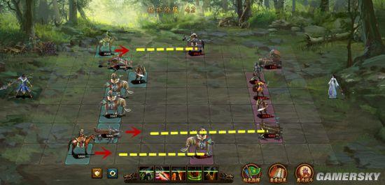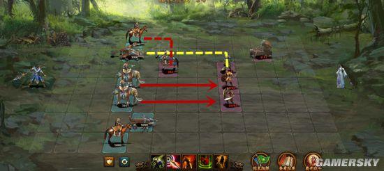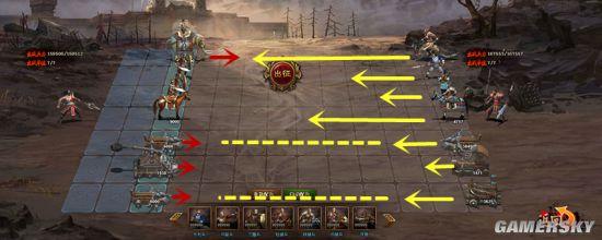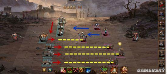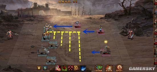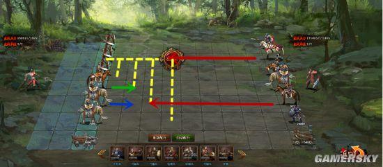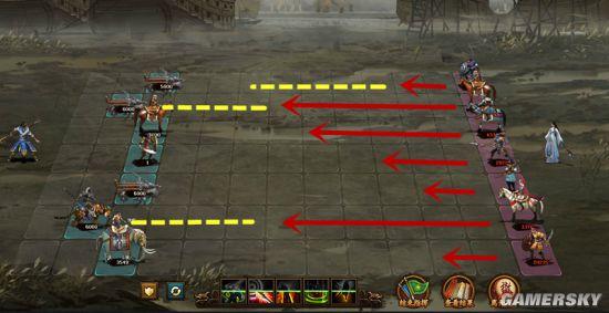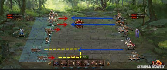 第六列:布阵时后退一格,不进入弓骑兵射程,消灭弓骑兵后去消灭上路枪兵
