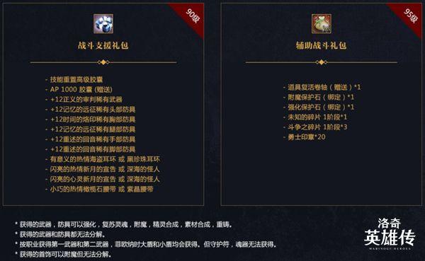 10月24日维护后,“角色成长目标”将迎来全新改版!英雄们升至90级后,将可领取全新的“90级战斗支援豪华礼包”!此前已经领取过90级、95级礼包的艾琳英雄可于10月24日至11月21日期间,在邮箱之中领取全新的90级礼包或特殊印章礼包,“特殊印章礼包”中包含勇士奖章*10和荣誉奖章*10,还请于角色上线的7天内领取并选择,11月21日维护后将不再进行补发!全新的“90级战斗支援豪华礼包”内包含双附魔首饰、+12橙色双附魔90级套装!