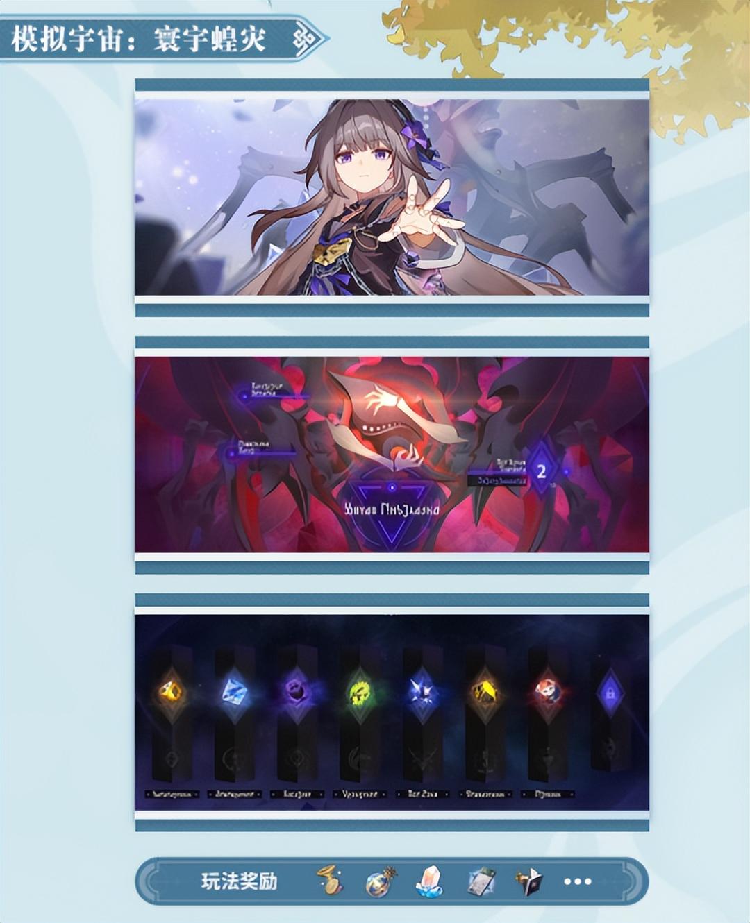 而新玩法模拟宇宙:寰宇蝗灾则是在常规每周模拟宇宙之外开辟的新玩法,玩法形式依旧是类Roguelike,不过其中加入了更多新怪、新机制、新事件和奖励,据说会带来大量的星琼奖励。